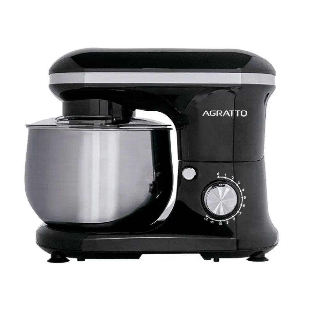 A Batedeira Planetária Agratto Supremma é um equipamento potente de 700W com tigela em aço inox de 5 litros, ideal para massas leves, médias e pesadas. Possui 12 velocidades, movimento planetário para misturas homogêneas, tampa antirrespingos e três batedores resistentes.