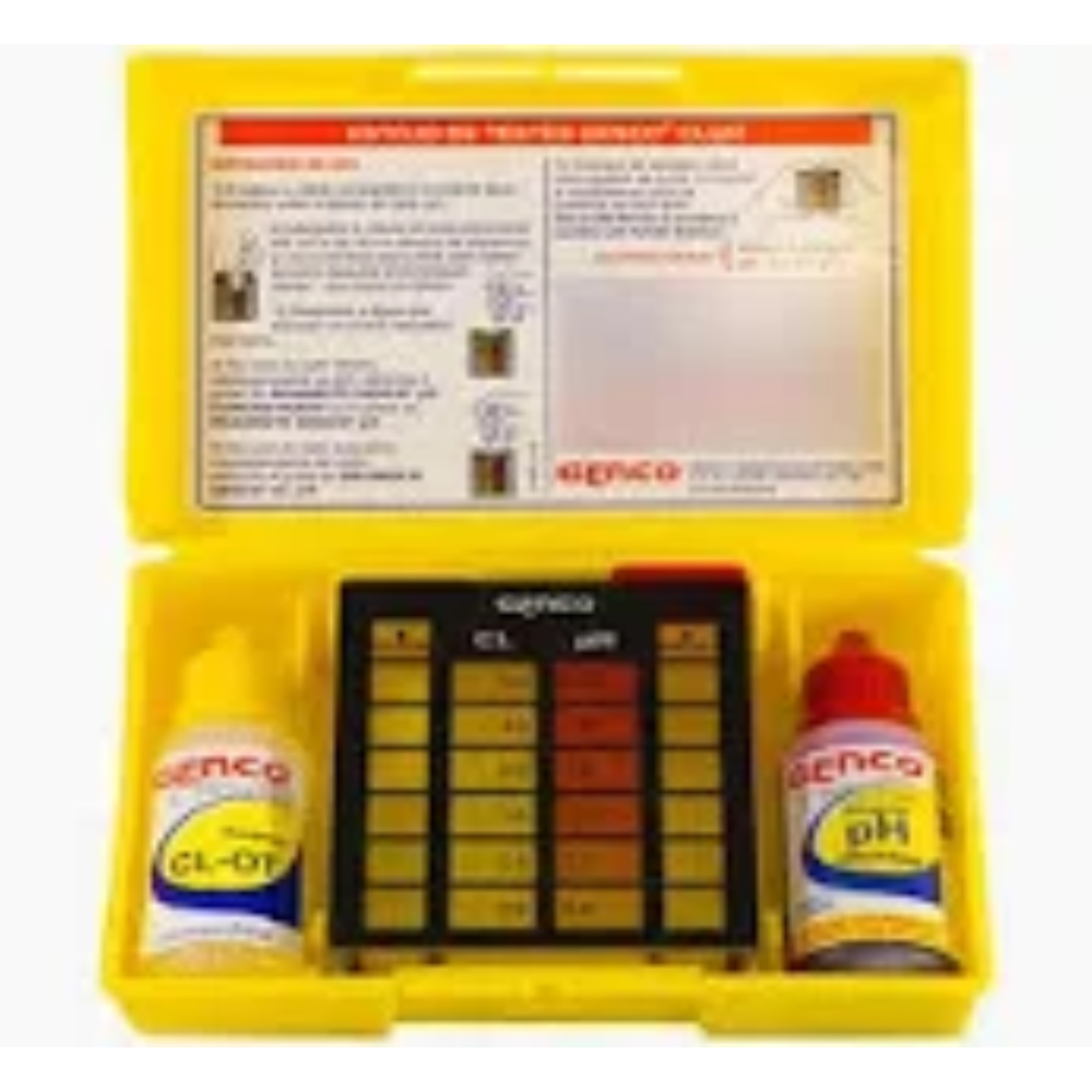 Estojo de Testes GENCO® - Cl/pH mede cloro livre e pH da água da piscina com resultados precisos e confiáveis de maneira rápida e simples.