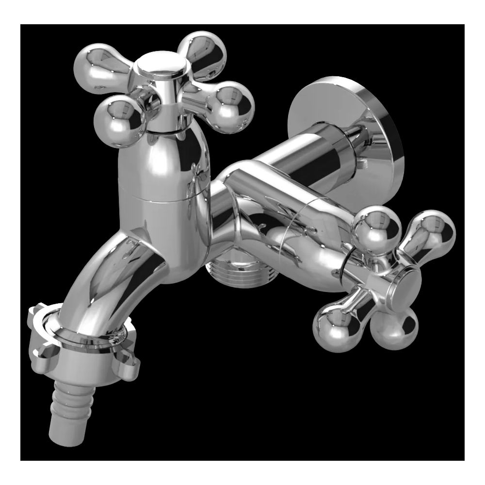 Torneira ABS para máquina de lavar, modelo 1428 C33 cromada injetada (1/4 de volta): indicada para tanque e lavadora, com acionamento rápido, leve e resistente à corrosão.